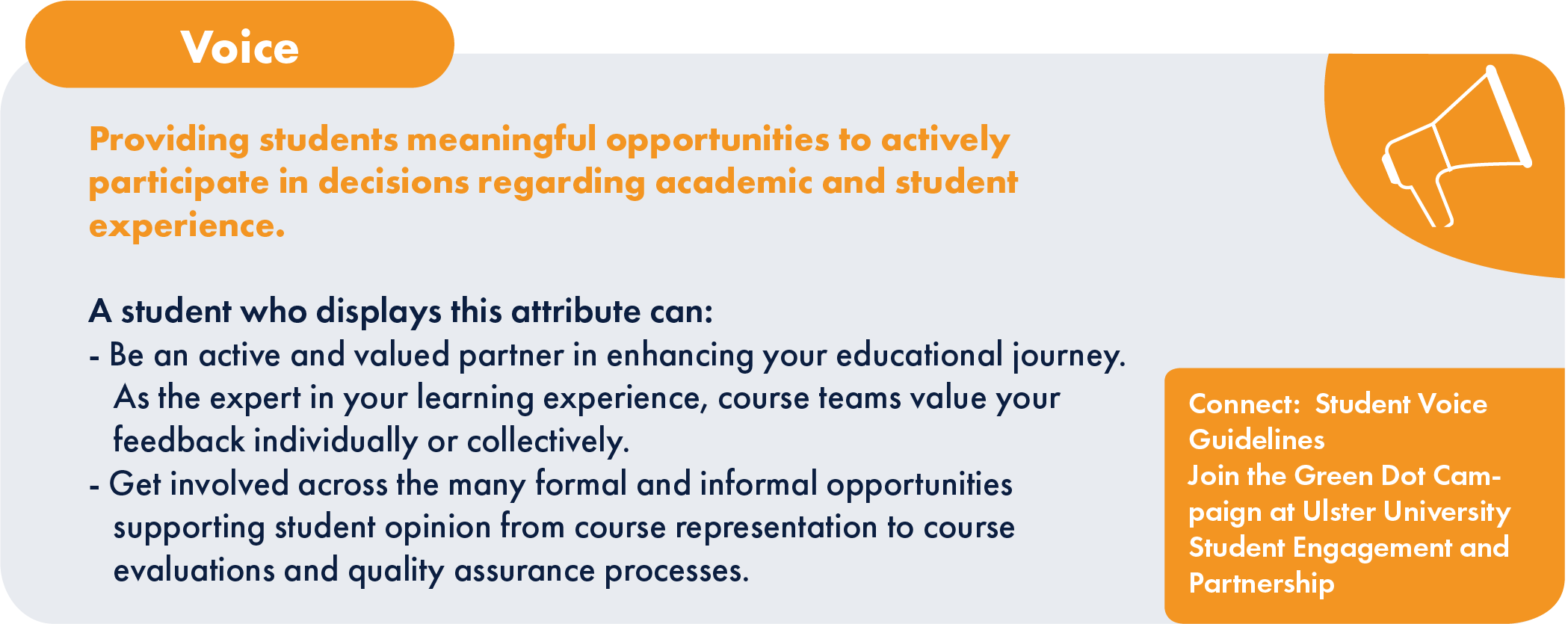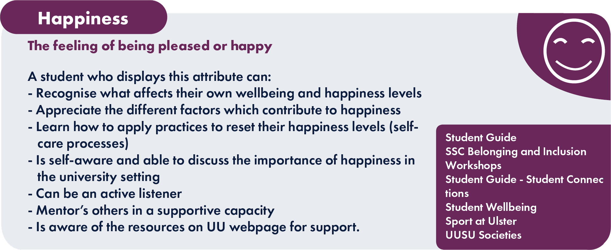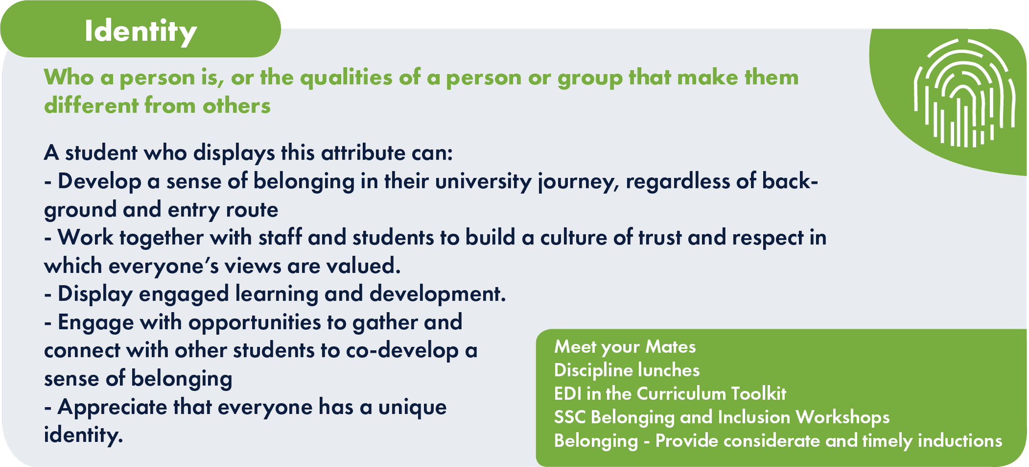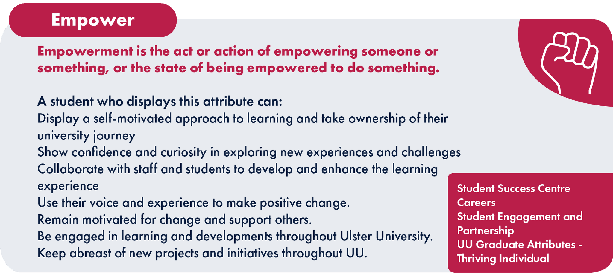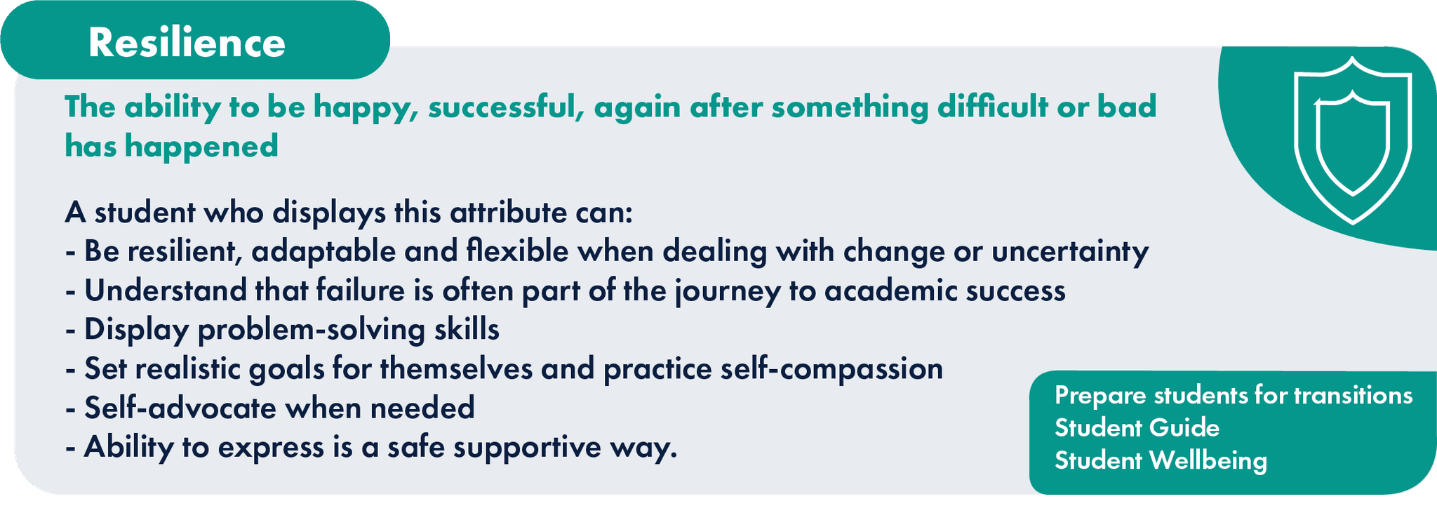 Designed to inform students of the qualities they need to display this attribute, and the ways they can gain these qualities through different activities.